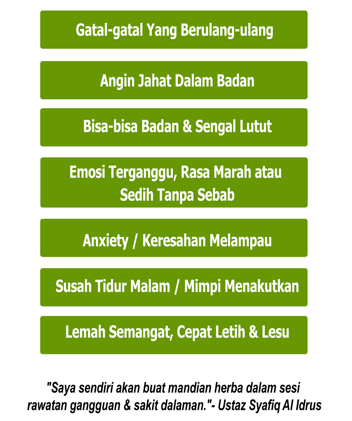 *PENAFIAN: Keberkesanan produk ini bergantung kepada kesesuaian individu. Setiap hasil dari penggunaan adalah berbeza bagi setiap individu. Produk ini akan memberi kesan terbaik sekiranya pengguna mengamalkan dengan cara betul berdasarkan banyak testimoni yang diperolehi. Kita berikhtiar, Tuhan yang menyembuhkan.