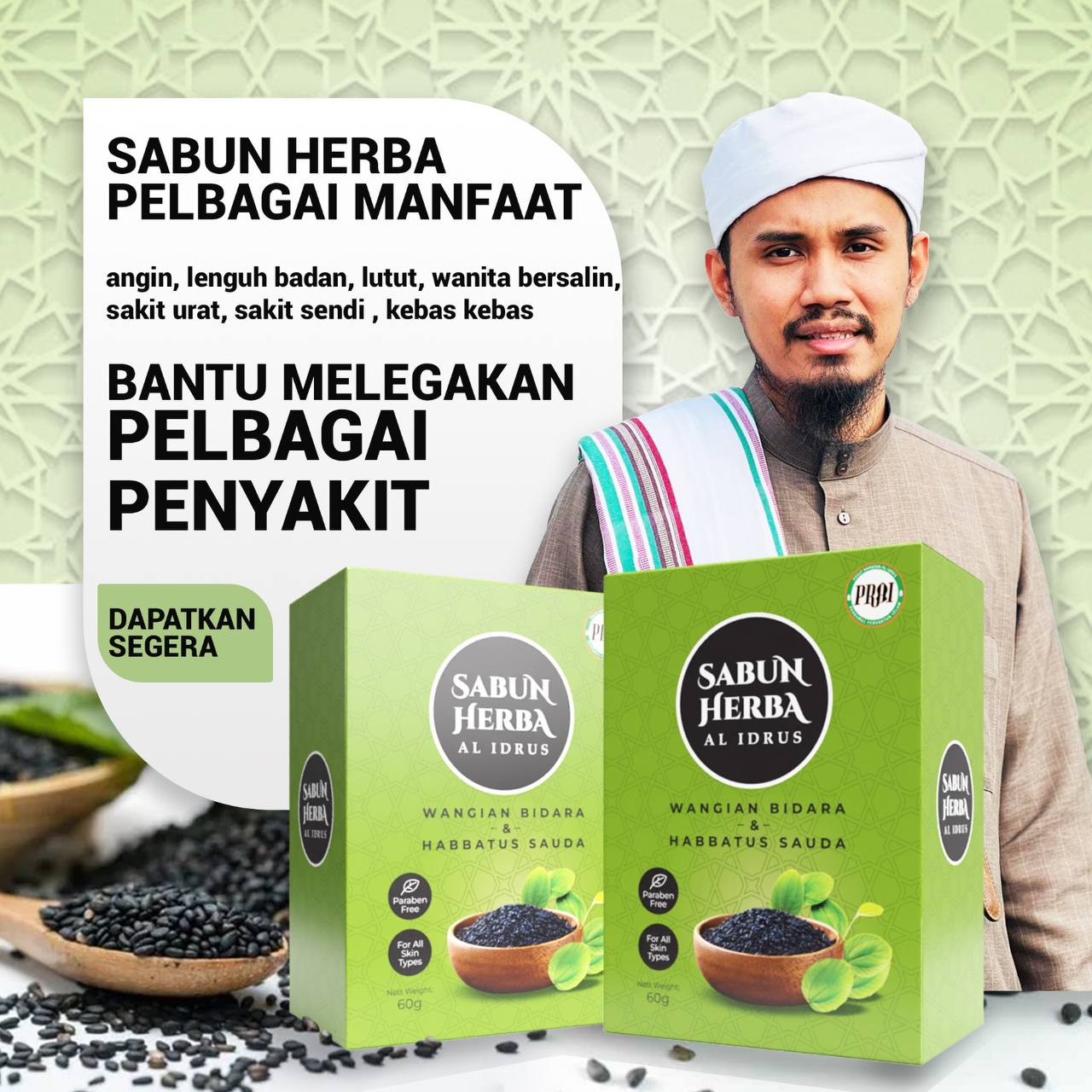 SABUN HERBA AL-IDRUS bukan sekadar sabun biasa. Ia adalah ikhtiar mandian herba terapi yang diamalkan oleh pengamal Rawatan Islam, Ustaz Syafiq Al Idrus, dalam membantu ribuan pesakit.
